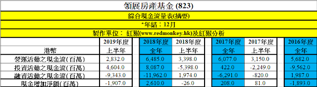 現時主力仍是經營民生商場的領展房產基金(823)於今天中午公布中期業績,每股派息$1.306,至少符合市場預期,下午股價升2.1%,市場初步反應理想。若如過往五年般,全年每股派息為上半年約2.06倍,即$2.69,比市場平均預期高約1%,若以今天收報$73.65計,預期息率約3.7%,仍高於合理估值。至於市場的進一步看法,還得看怎樣傳譯管理層於業績公布後的解釋及展望,現分享財務報表分析摘要,先作過參考。
