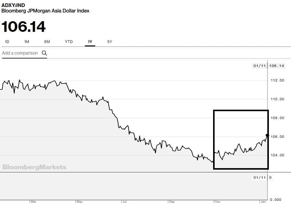 可是,若只看亞洲貨幣指數,卻已自11月初見底持續回升,明顯較整體新興市場強。事實上,不少東南亞國家的股市亦自11月初見底持續反彈,難得股匯齊升,卻鮮有傳媒提及。