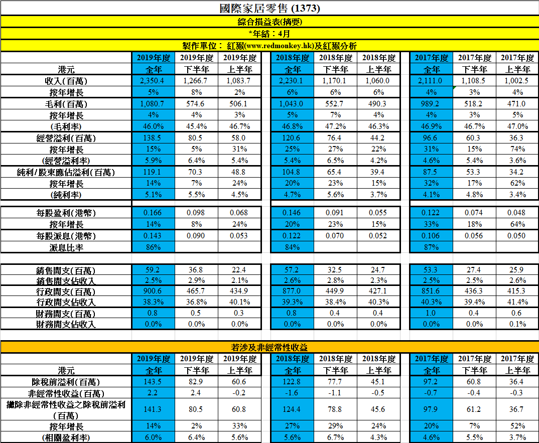 主力經營「日本城」的國際家居零售(1373)昨天公布至今年4月全年業績,今天股價先跌後回穩,近日股價亦明顯轉弱,走勢和其他因受累香港政治事件而積弱的本地股相若,究竟業績是否已對短期股價起不到作用,這個問題不易解答,但中長期的股價始終還看業績優劣。