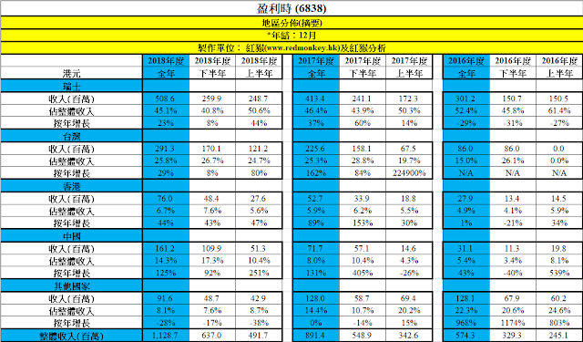 看下表不同地區的收入,當年剛好錄得來自台灣的收入,佔比亦越趨重要。
